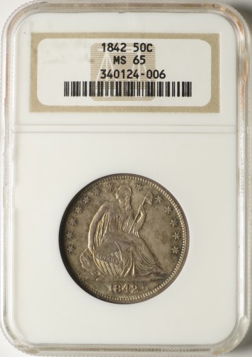 1842 50C Medium Date, Large Letters, MS65 NGC